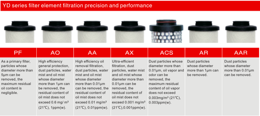 In order to ensure clean, dry and stable air, please replace the original filter element of yuka company. During the whole use process, the filter element is constantly impacted by oil, acid condensate and dust particles with high flow rate. At the same time, you have to filter out and continuously protect your compressed air system. Beyond the replacement cycle, the filter media will be weakened and the filter performance will be reduced. These potential and serious performance degradation cannot be detected simply by the differential pressure indicating device. It is very necessary to change the filter element regularly every year. If it is not replaced in time, the product performance and air quality will be reduced, and the production cost will be increased.