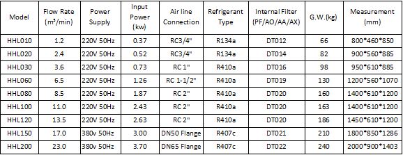 Rated inlet temperature of compressed air: 38℃, maximum 65℃