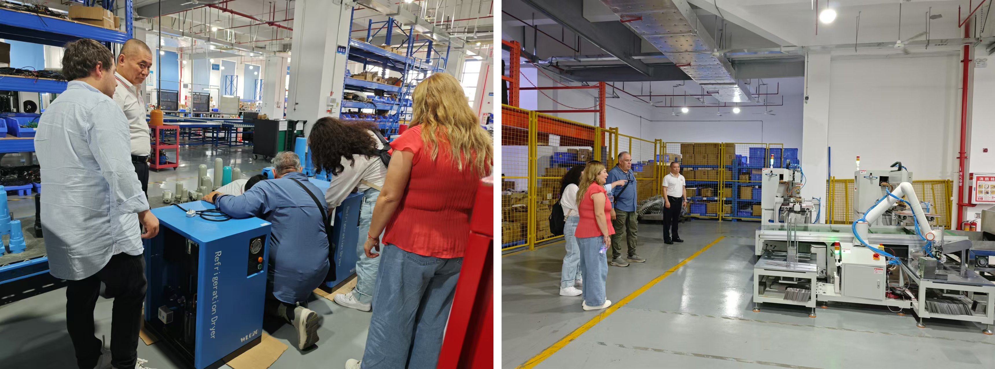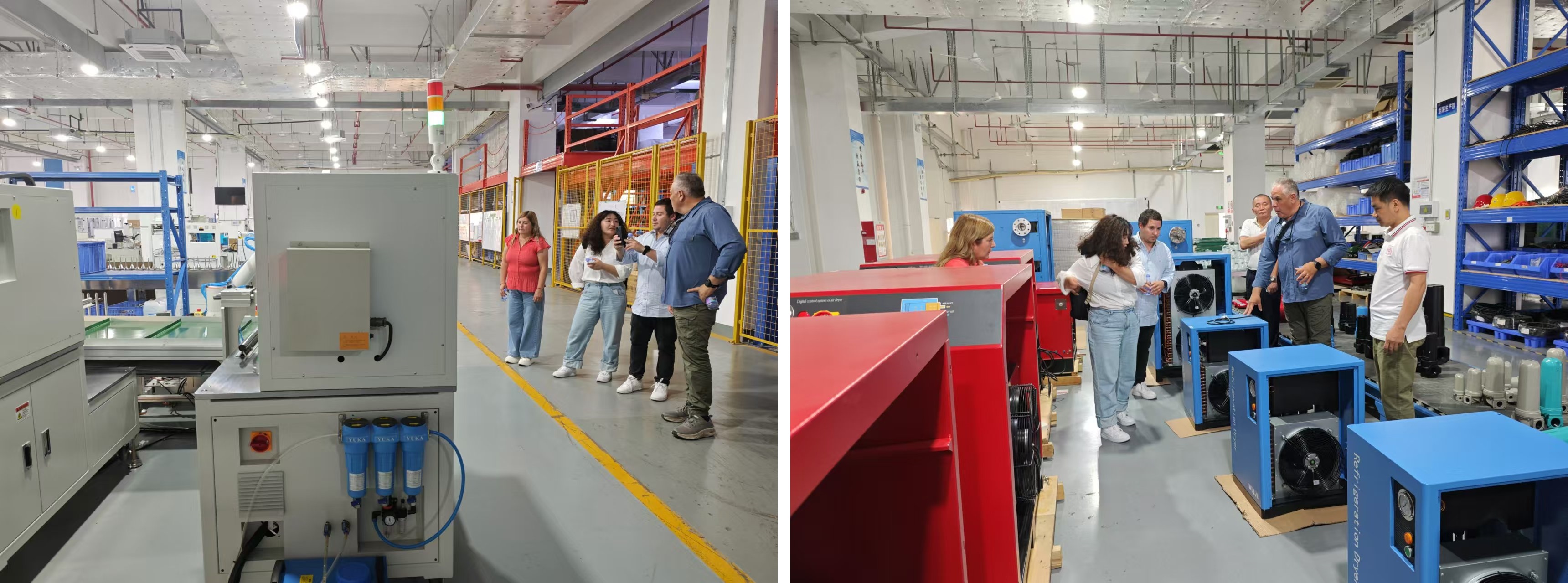 在冷干機生產(chǎn)車間,客戶對我公司生產(chǎn)的冷干機表現(xiàn)出濃厚的興趣。我公司的陪同人員大方地向客戶展示了產(chǎn)品的內(nèi)部結(jié)構(gòu),并詳細闡述了設(shè)備的工作原理以及我公司設(shè)備的優(yōu)勢之處。