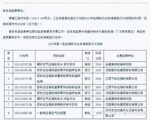 為了行業(yè)產(chǎn)品規(guī)范化標準化,全國壓縮機標準化技術委員會下達了工業(yè)和信息化部2015年關于壓縮機行業(yè)標準制修訂計劃項目的通知。