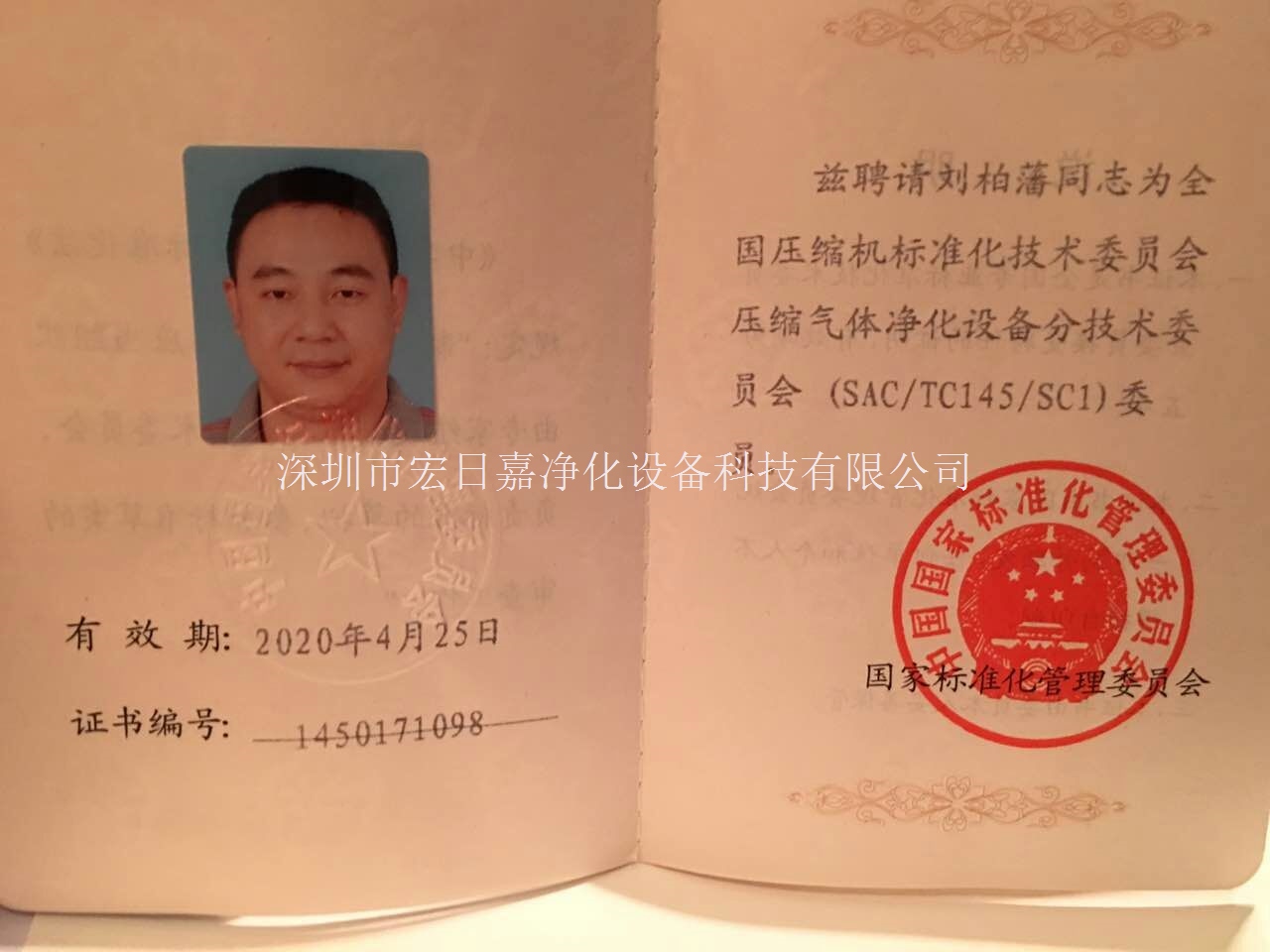 熱烈祝賀宏日嘉劉柏藩董事長(zhǎng)被中國(guó)國(guó)家標(biāo)準(zhǔn)化管理委員會(huì)聘請(qǐng)為全國(guó)壓縮機(jī)標(biāo)準(zhǔn)化技術(shù)委員會(huì)壓縮氣體凈化設(shè)備分技術(shù)委員會(huì)(SAC/TC145/SC1)委員。