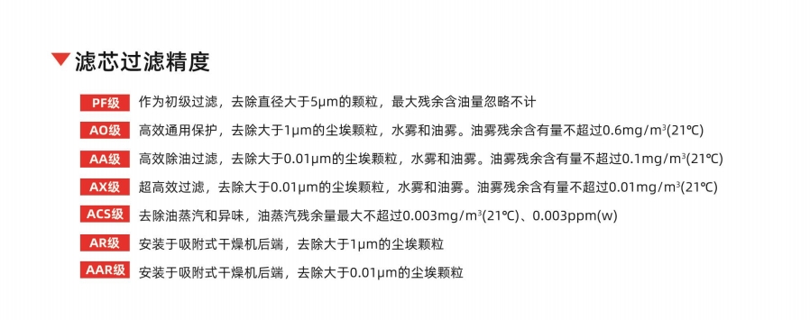 過(guò)濾精度,作為衡量過(guò)濾器性能的核心指標(biāo),直接關(guān)乎到壓縮空氣的潔凈程度。